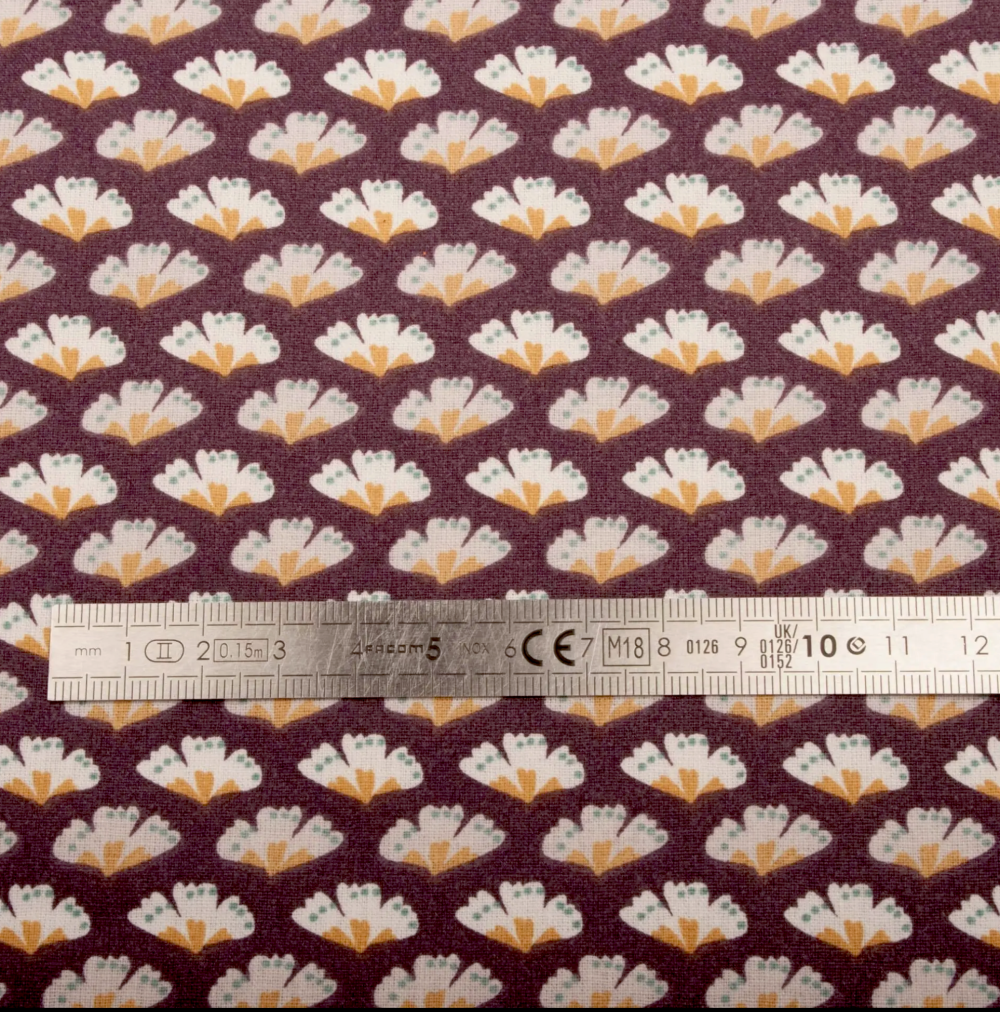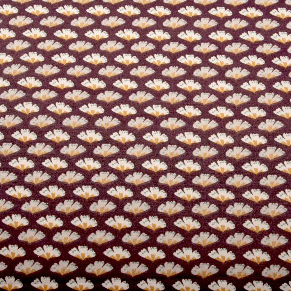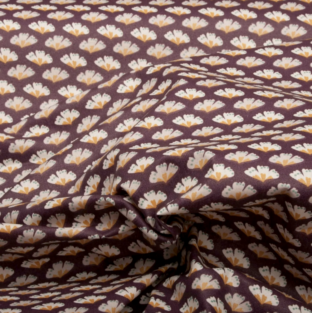 Tissu coton enduit feuilles brun et beige 50x77cm
