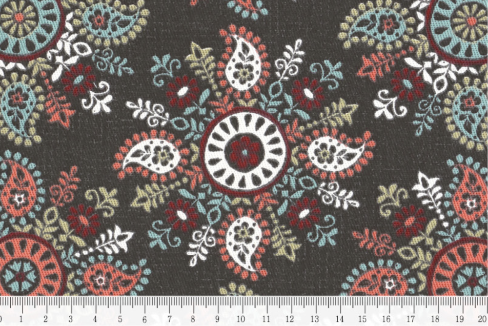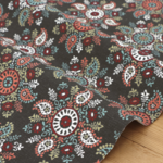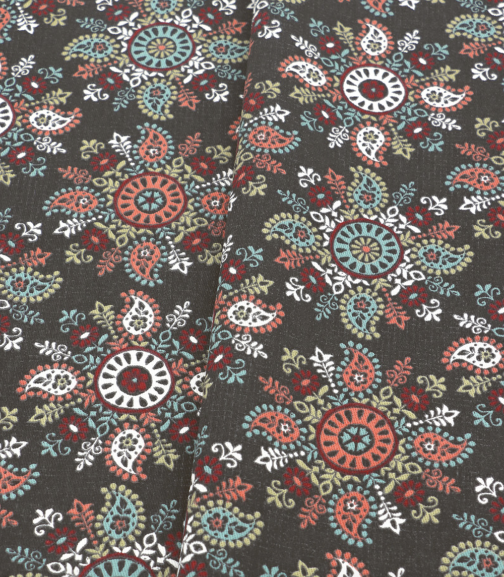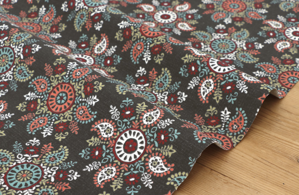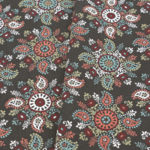 Tissu 100% coton enduit dans les tons noir avec des mandalas dessus