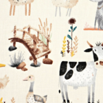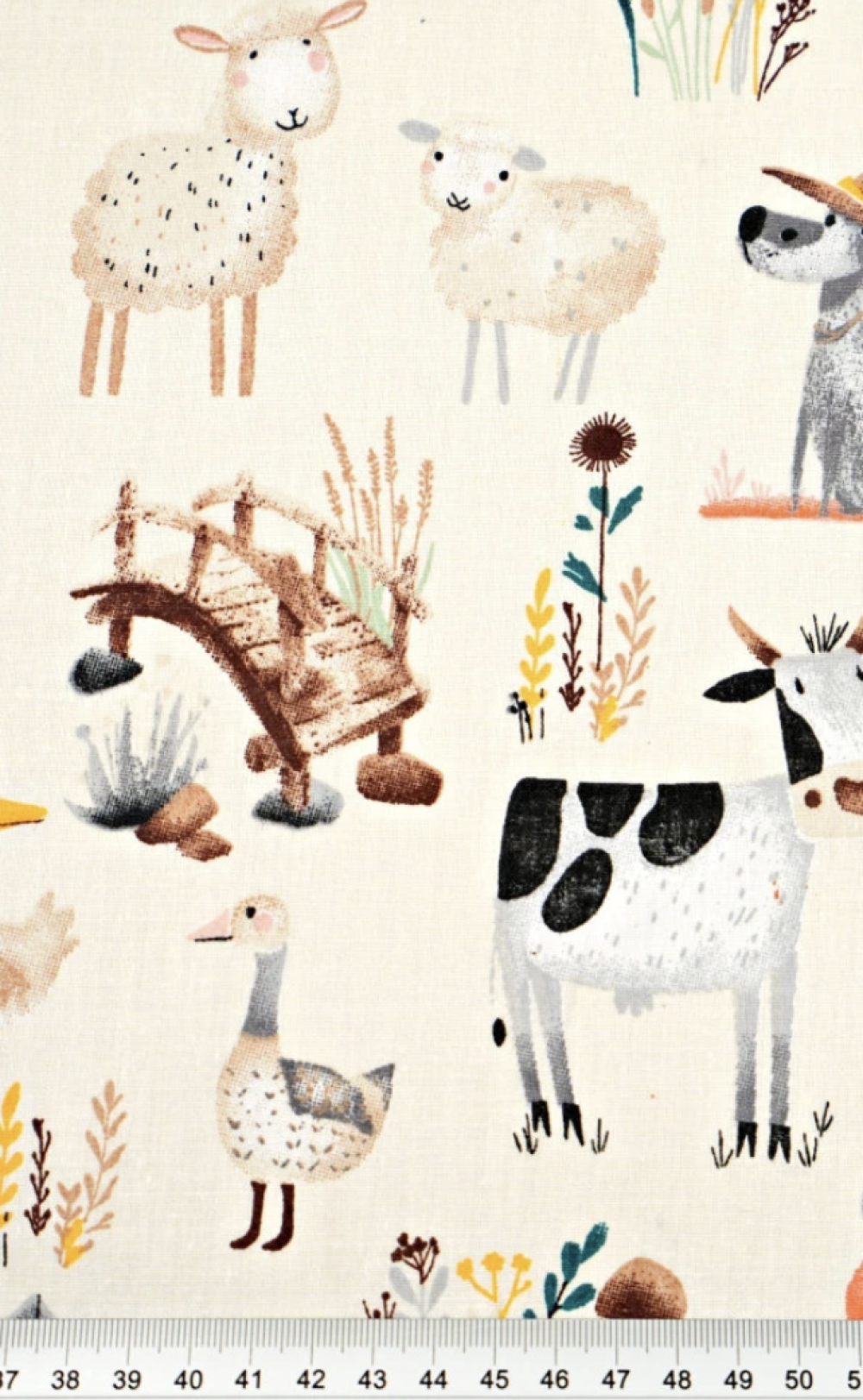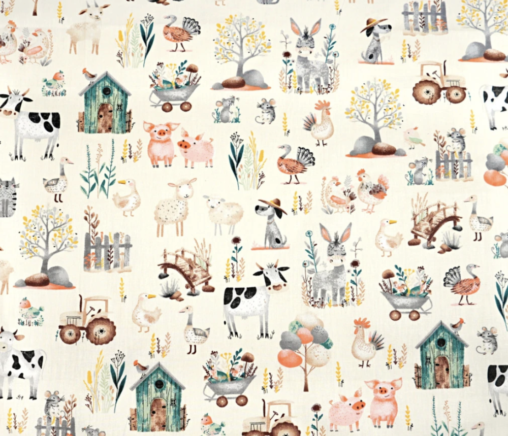 Tissu 100% coton beige enfant sur le thème des animaux de la ferme