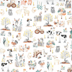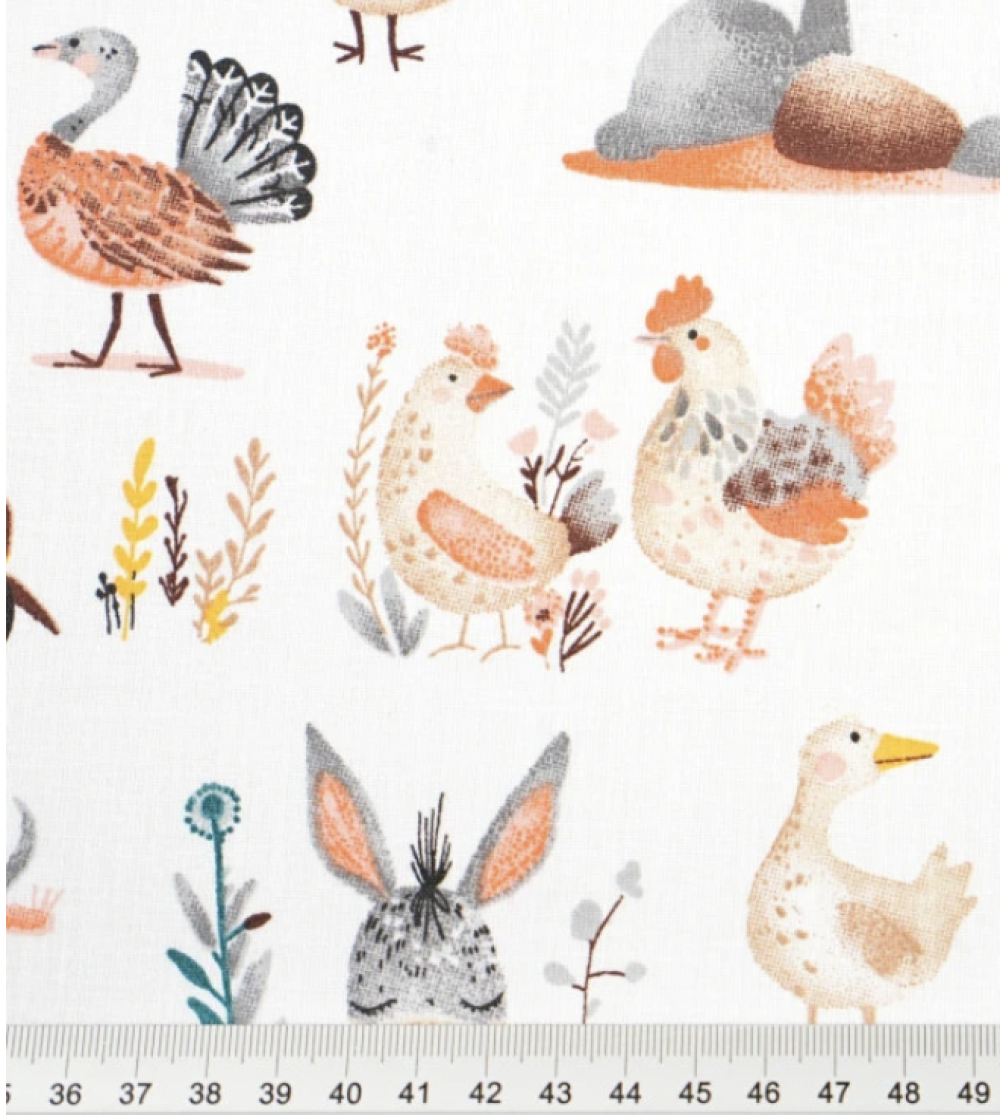 Tissu 100% coton blanc imprimé avec les animaux de la ferme