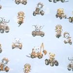 Tissu 100% coton enfant bleu avec des petits animaux en voiture