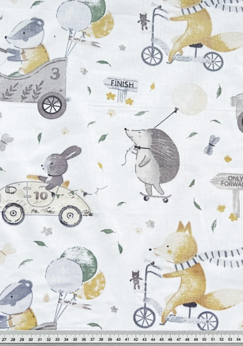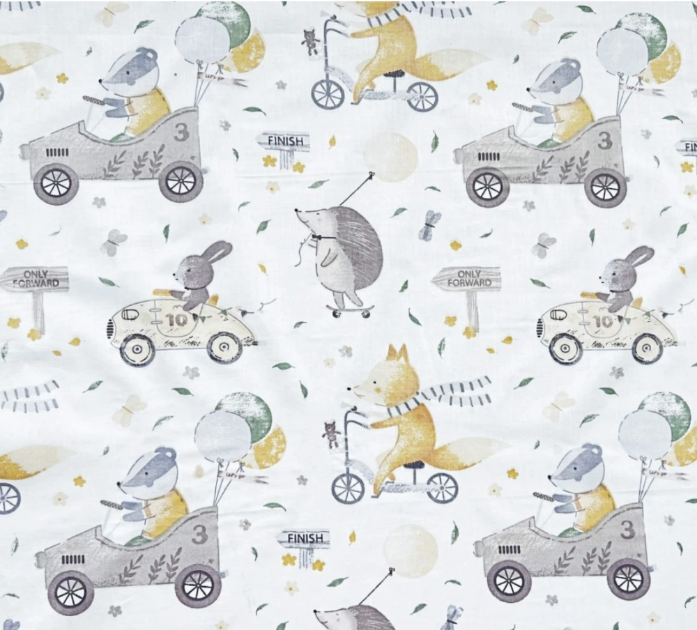 Tissu 100% coton enfant blanc avec des petits animaux style vintage