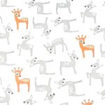 Tissu 100% coton blanc avec des petits faons gris et oranges