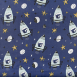 Tissu enfant coton fusées 50x80 cm