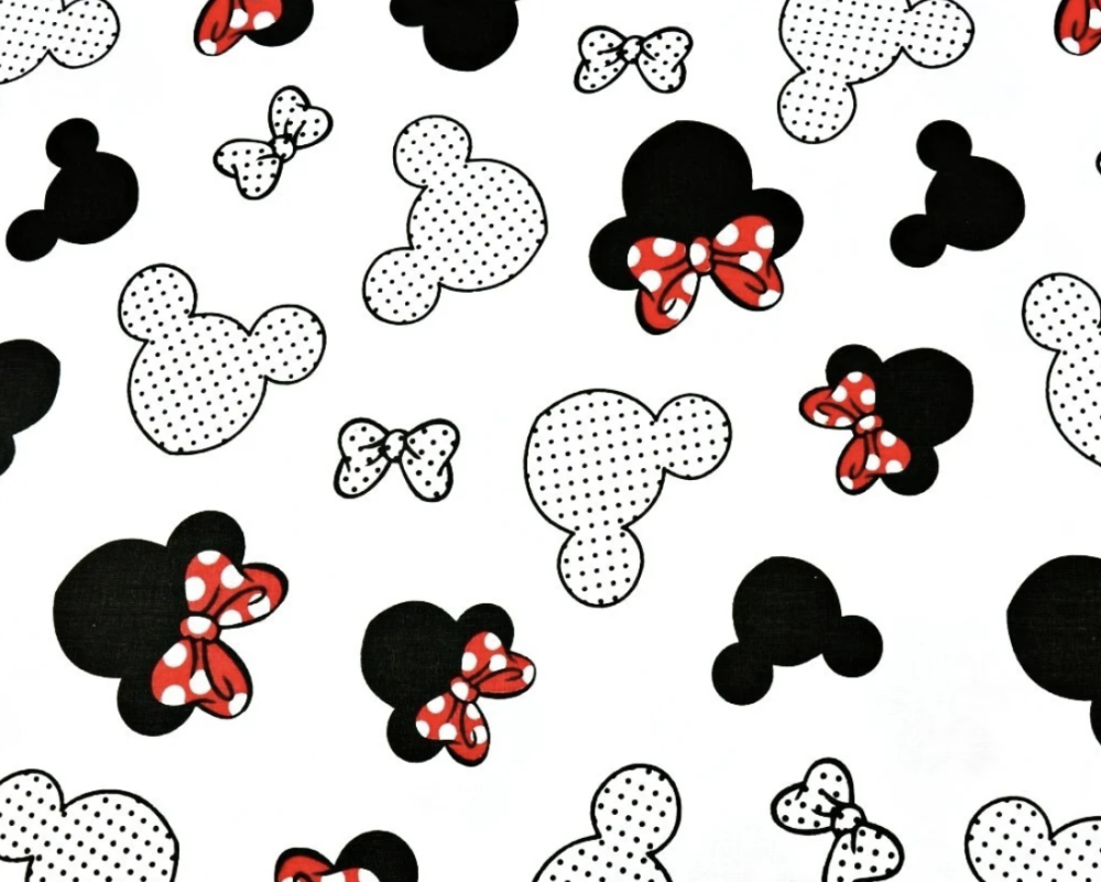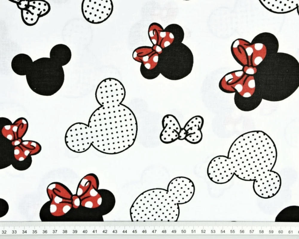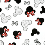 Tissu 100% coton imprimé Minnie noeud rouge (jusqu'à 8cm de hauteur pour la tête de minnie)