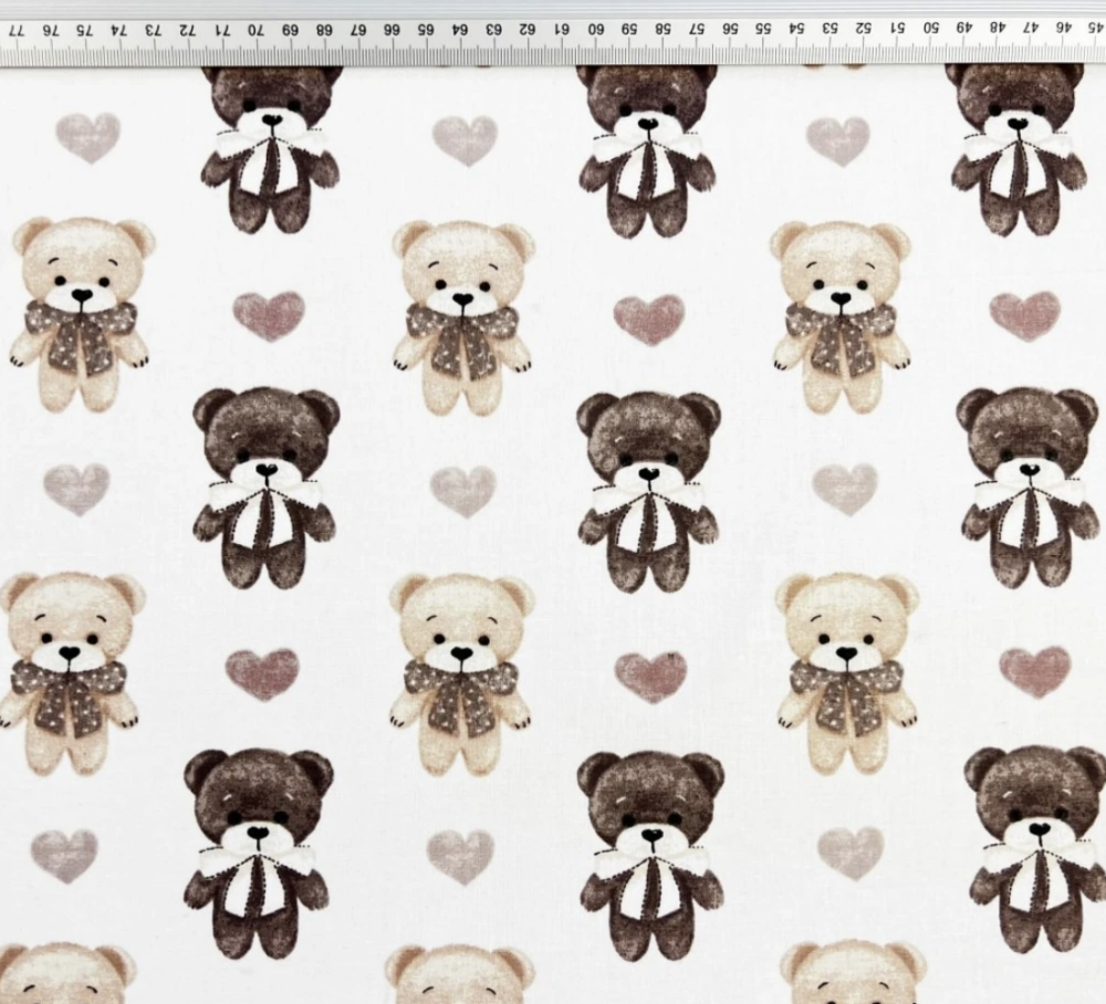 Tissu 100% coton blanc avec des petits ours de 6 cm