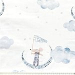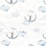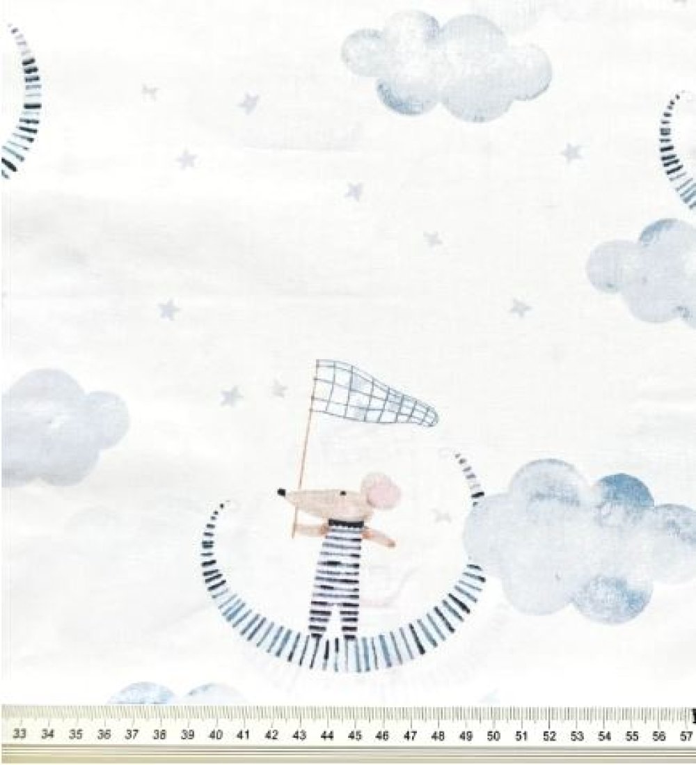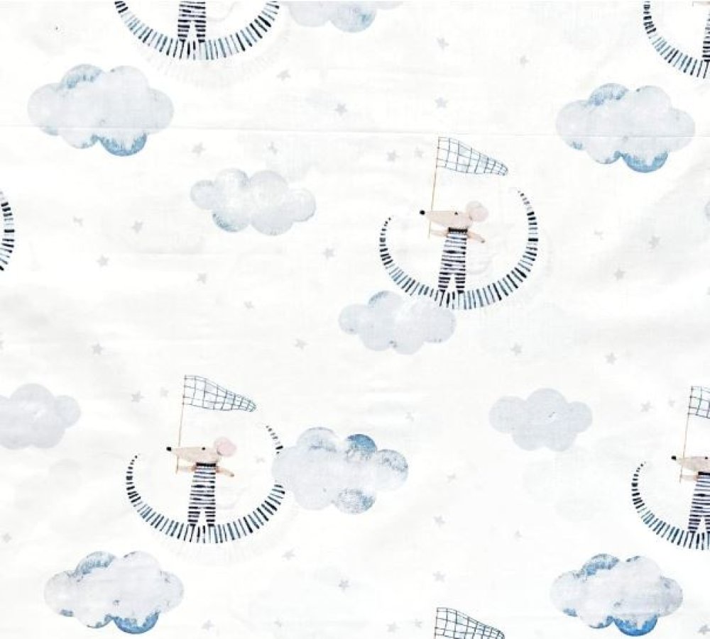 Tissu 100% coton blanc avec des petites souris sur la lune