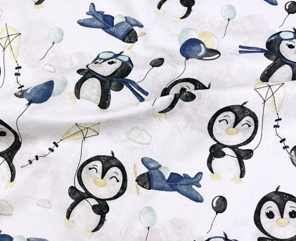 Tissu 100% coton avec des pingouins bleus dessus