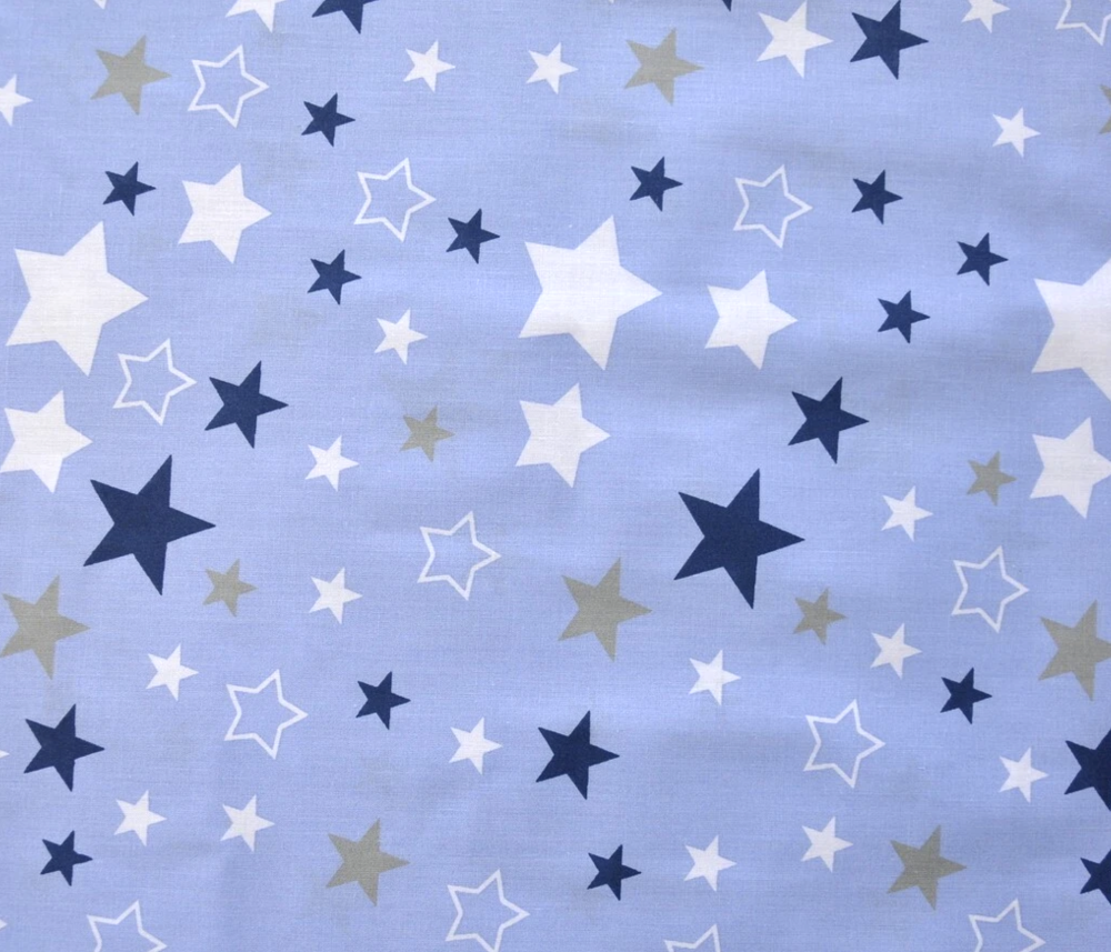 Tissu 100% coton bleu avec des étoiles blanches et bleues dessus.
