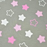 Tissu étoiles gris, blanc et rose 49x70 cm