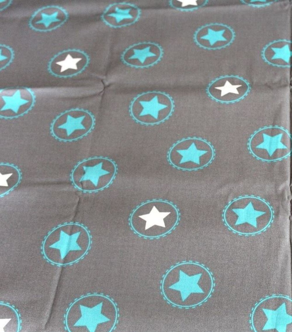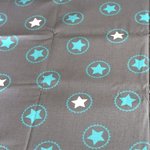 Tissu 100% coton gris avec des étoiles blanches et turquoise