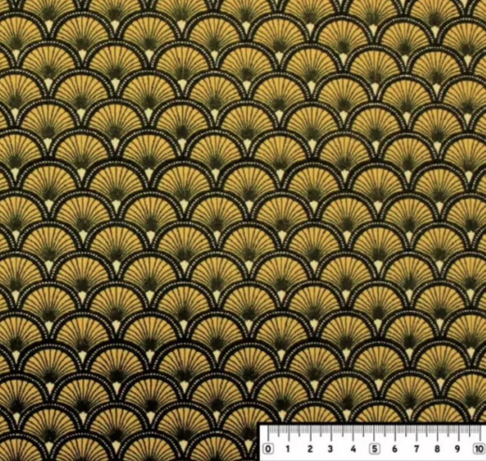 Tissu coton éventails jaune et noir 50x80 cm