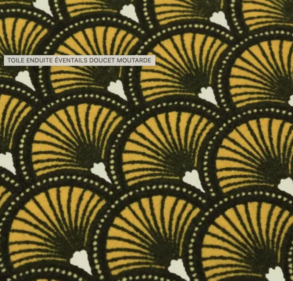 Tissu coton éventails jaune et noir 50x80 cm