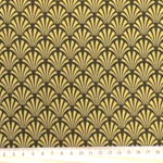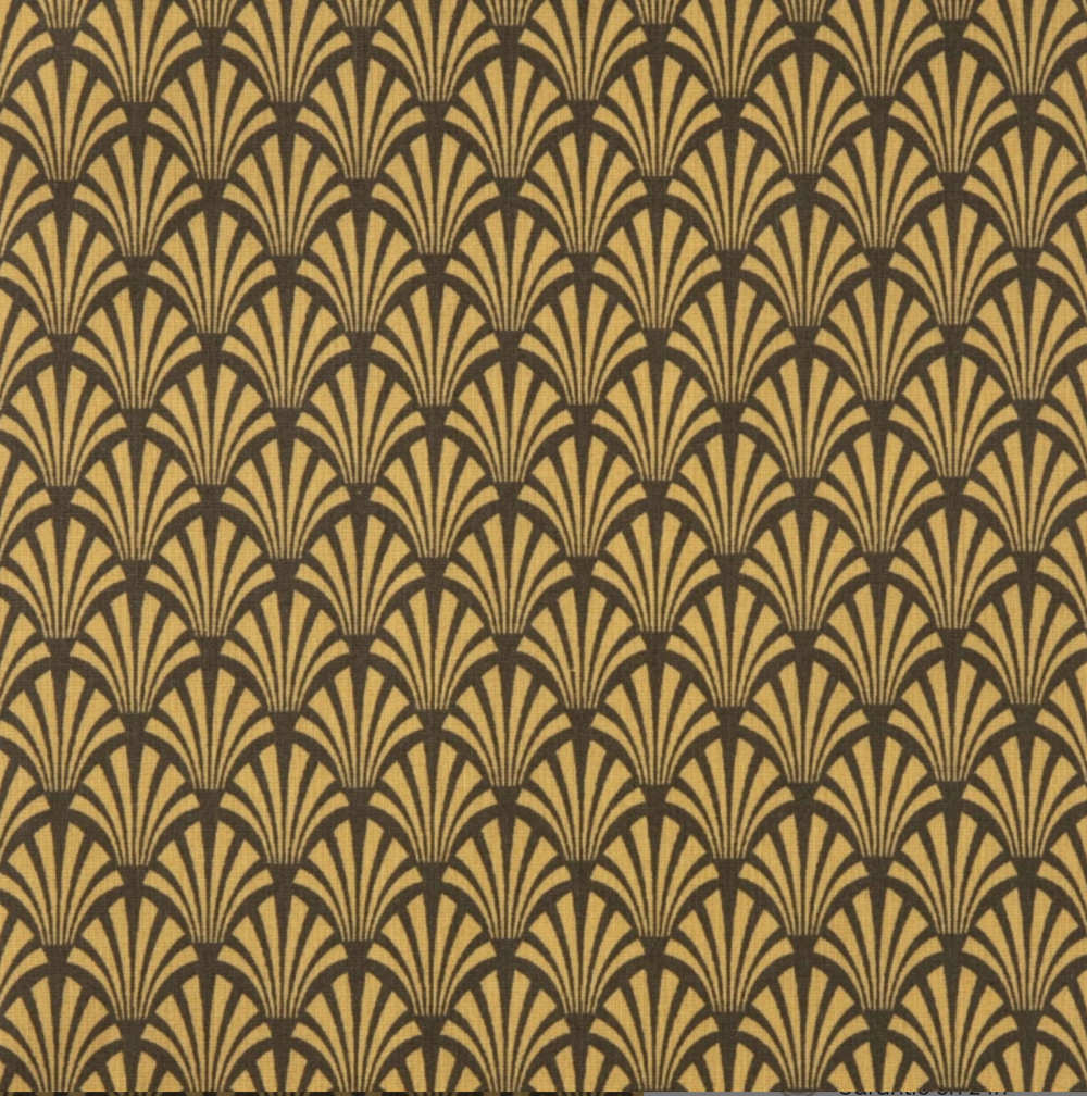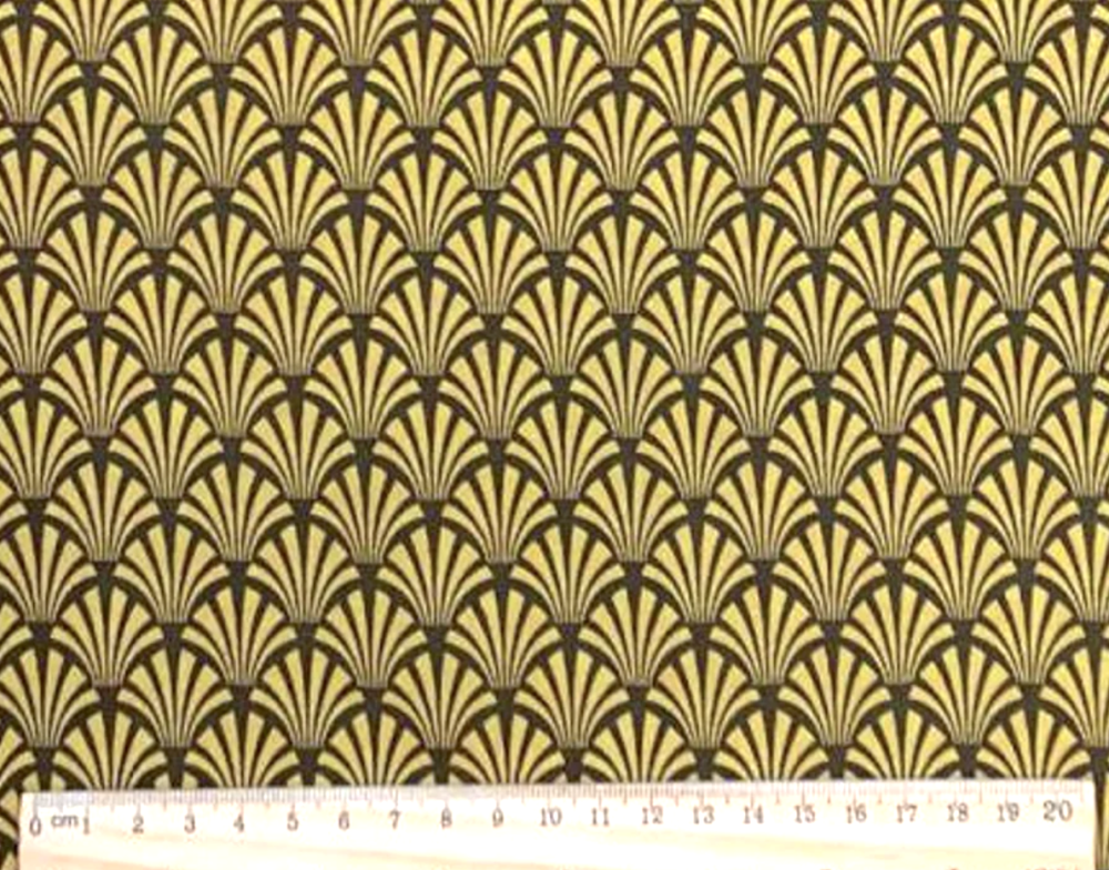 Tissu 100% coton jaune imprimé éventails moutarde et marron
