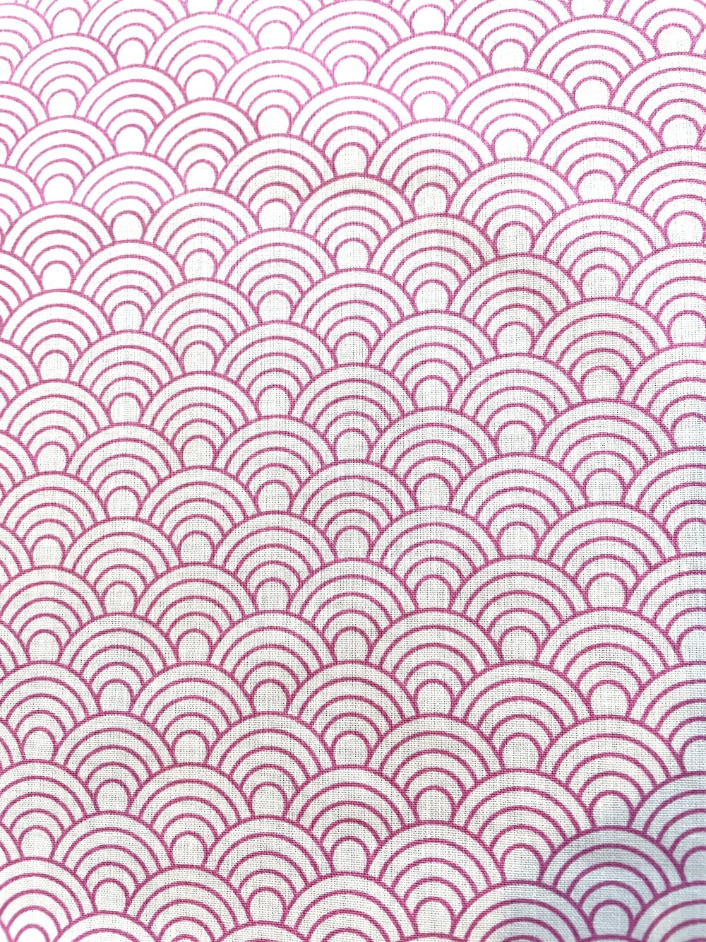 Tissu 100% coton blanc avec des imprimés en forme d'éventails rose