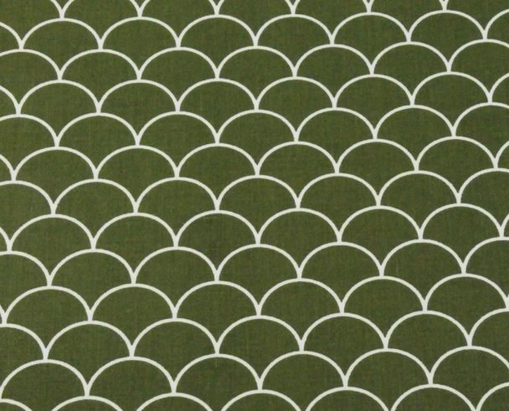 Tissu éventails vert kaki et blanc 50x80 cm
