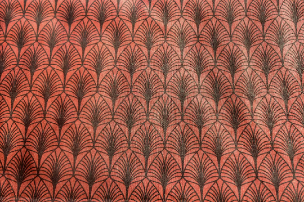 Tissu 100% coton couleur rouille imprimé de feuilles marrons