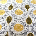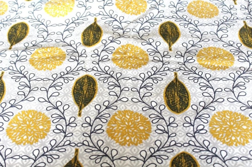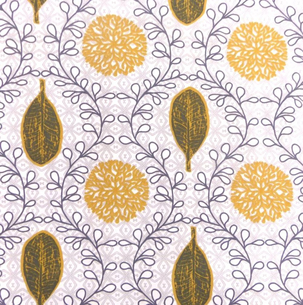Tissu 100% coton blanc et gris avec des feuilles dessus pour un esprit tropical très tendance.