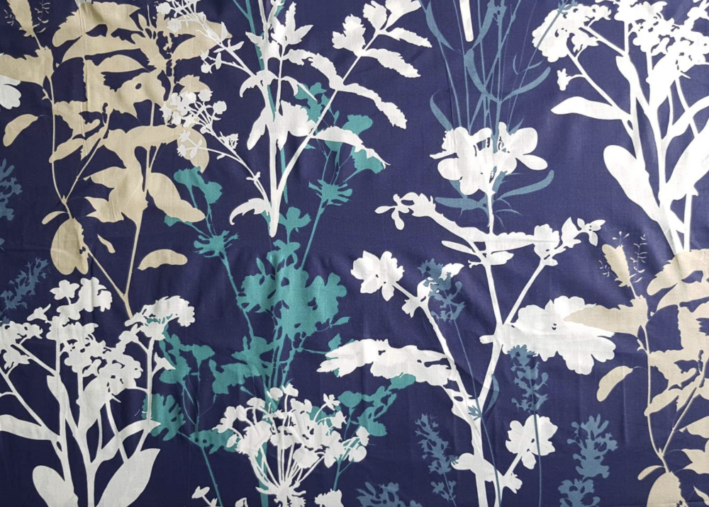 Tissu fleurs bleu, beige et blanc 50x72cm