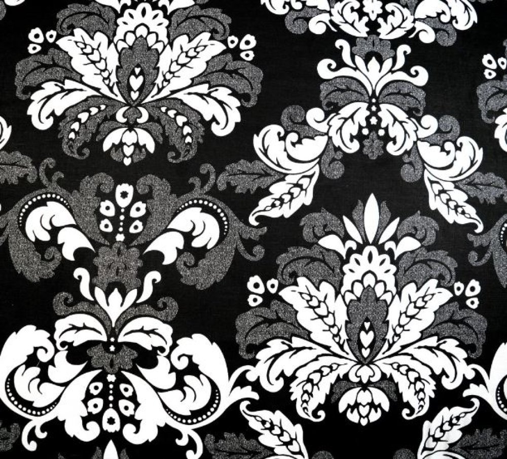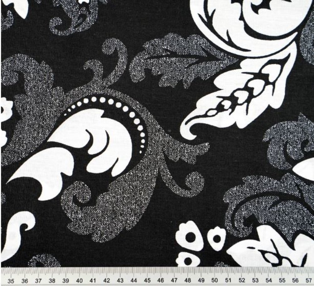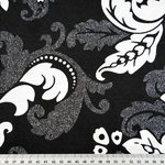 Tissu 100% coton noir imprimé de grosses fleurs grises et blanches pour un effet déco folk