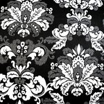 Tissu 100% coton noir imprimé de grosses fleurs grises et blanches pour un effet déco folk