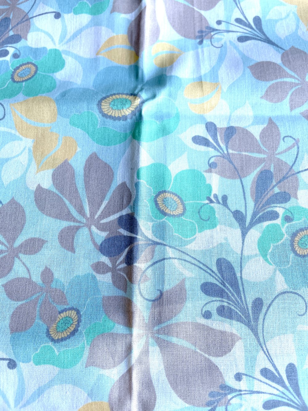 Tissu coton fleurs multicolores dans les tons bleu-, vert et beige