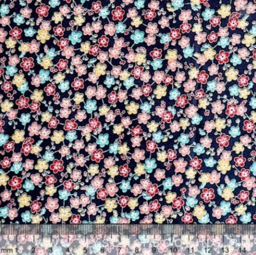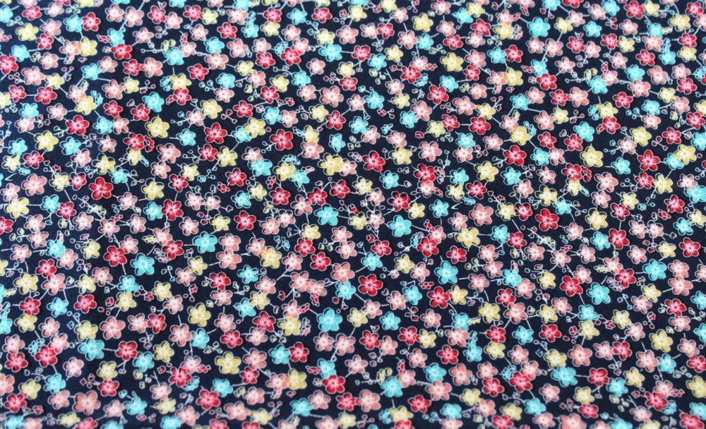 Tissu 100% coton marine avec des fleurs multicolores dessus pour un esprit liberty