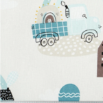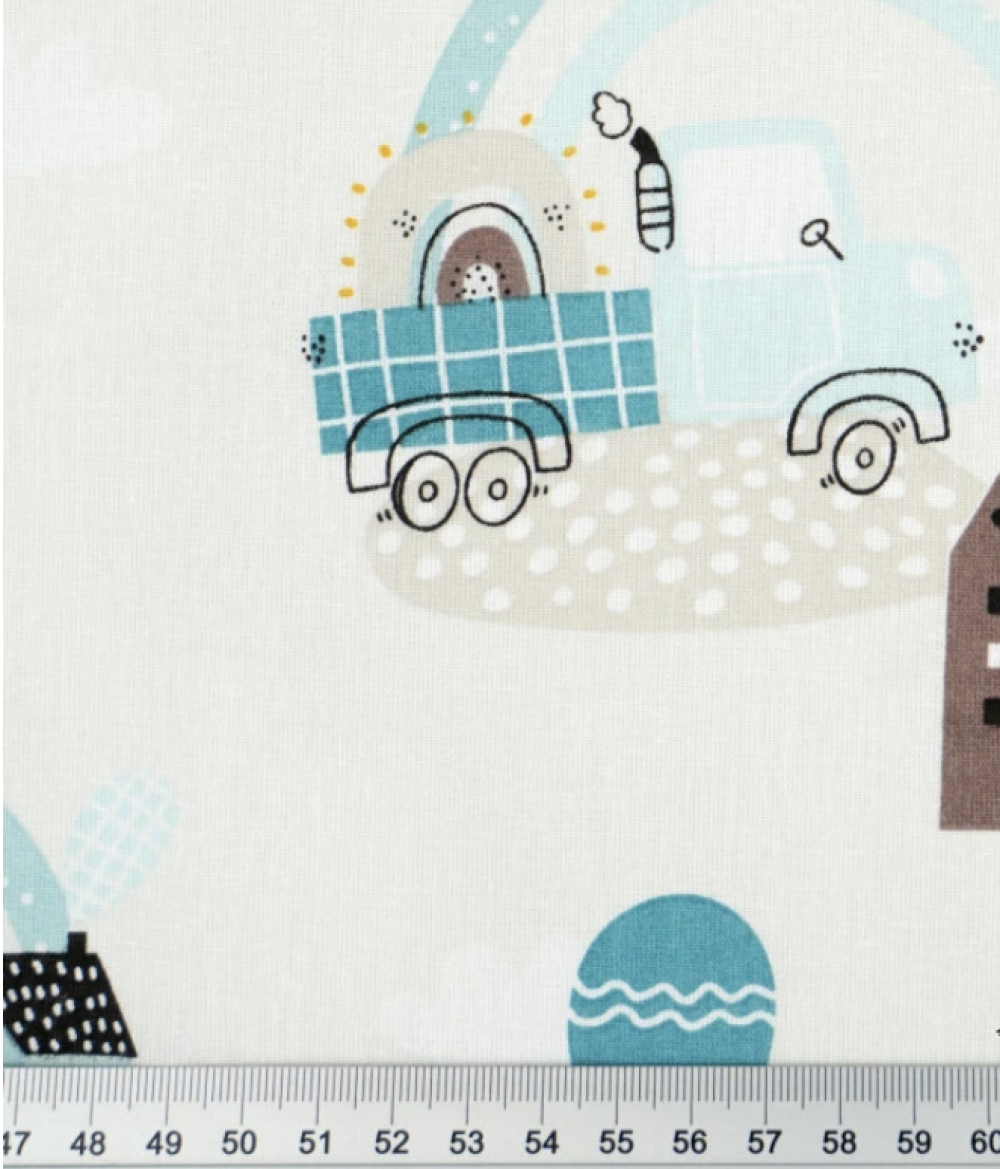 Tissu 100% coton blanc imprimé thème chantier multicolore pour un petit garçon