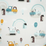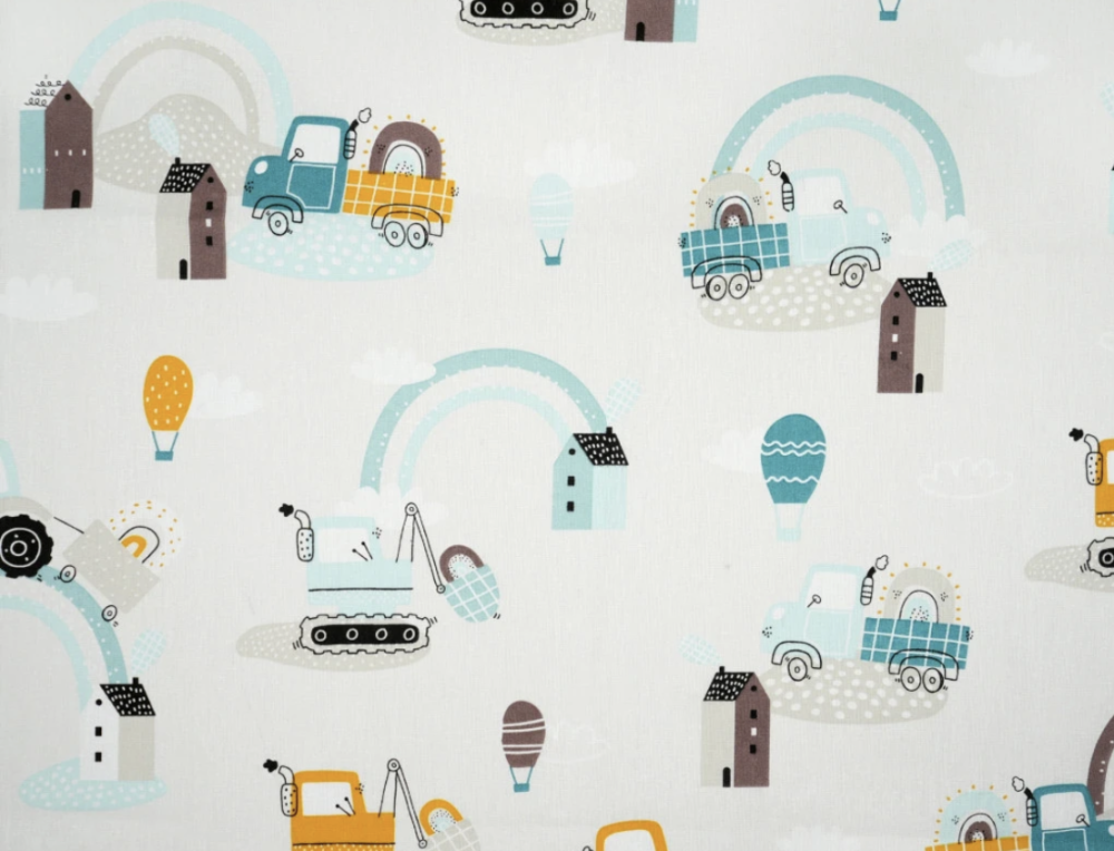 Tissu 100% coton blanc imprimé thème chantier multicolore pour un petit garçon