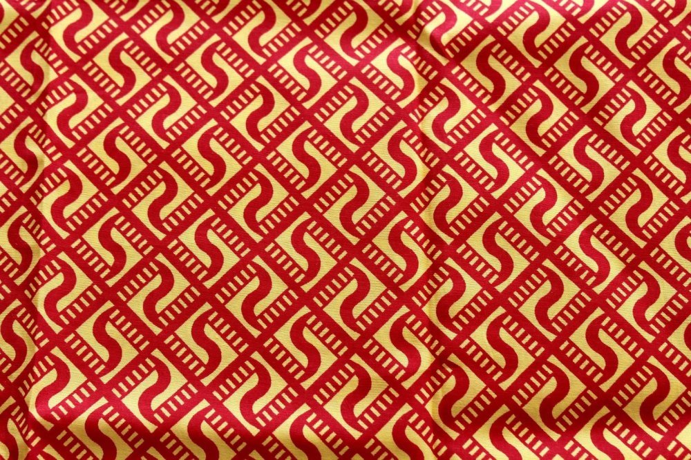 Tissu polycoton jaune et rouge avec des motifs graphiques
