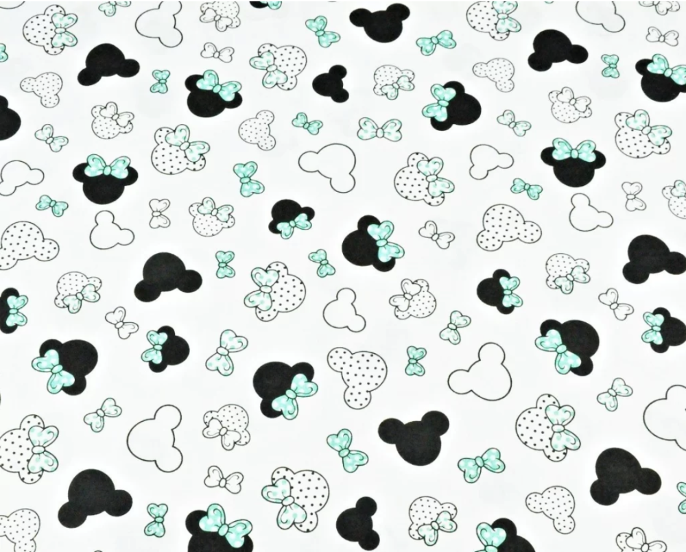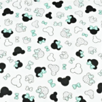 Coupon tissu 100% coton blanc avec la tête de Minnie et un nœud vert menthe