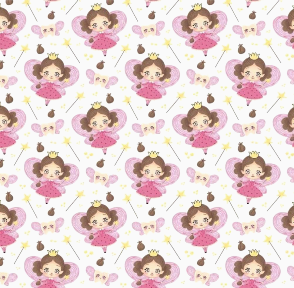 Tissu 100% coton blanc avec des petites fées roses dessus