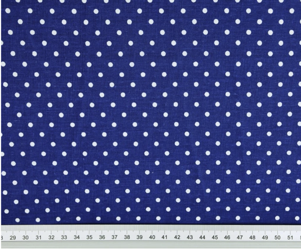 Tissu 100% coton bleu à pois blanc de 4mm de diamètre