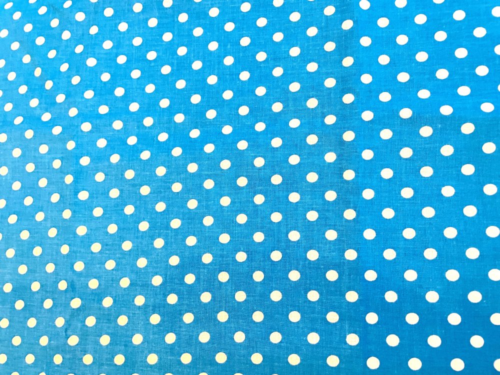 Tissu 100% coton à pois turquoise et blanc de 7mm de diamètre
