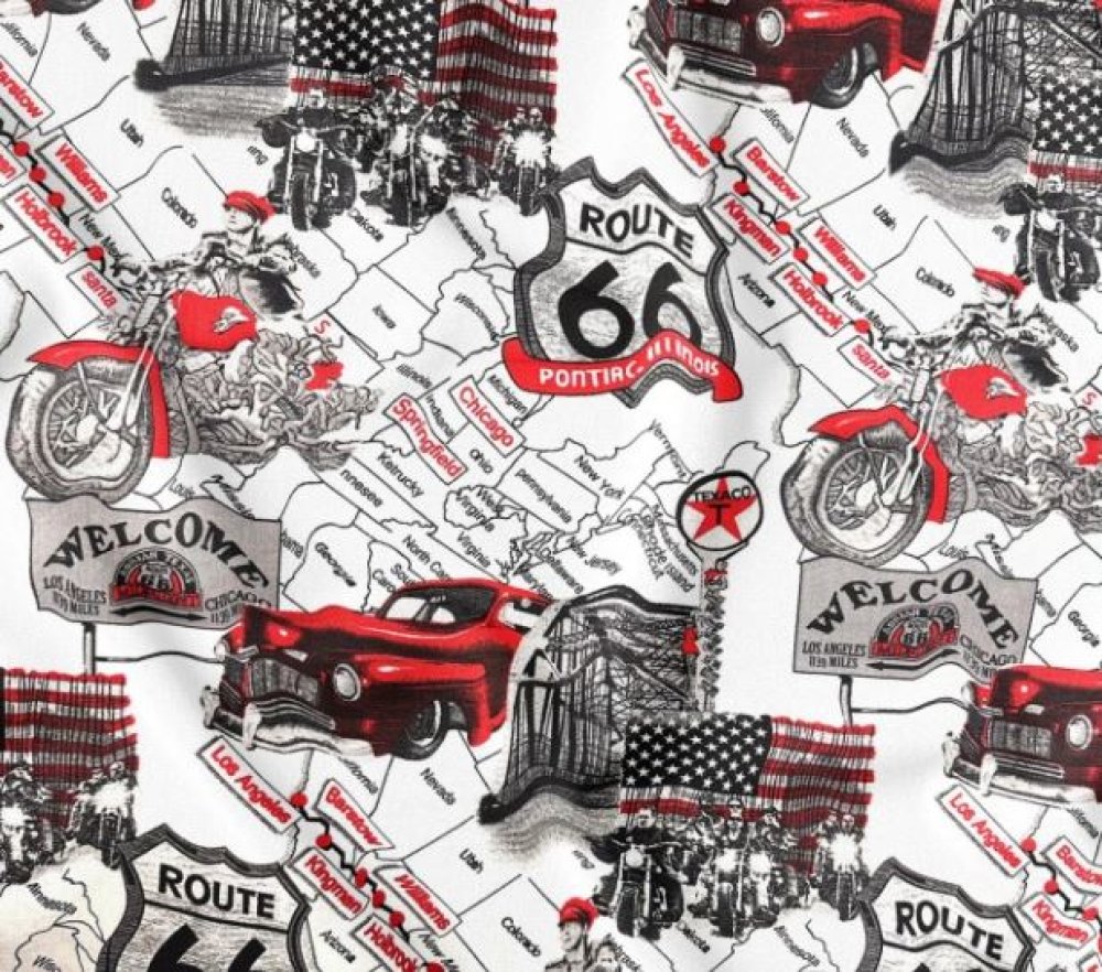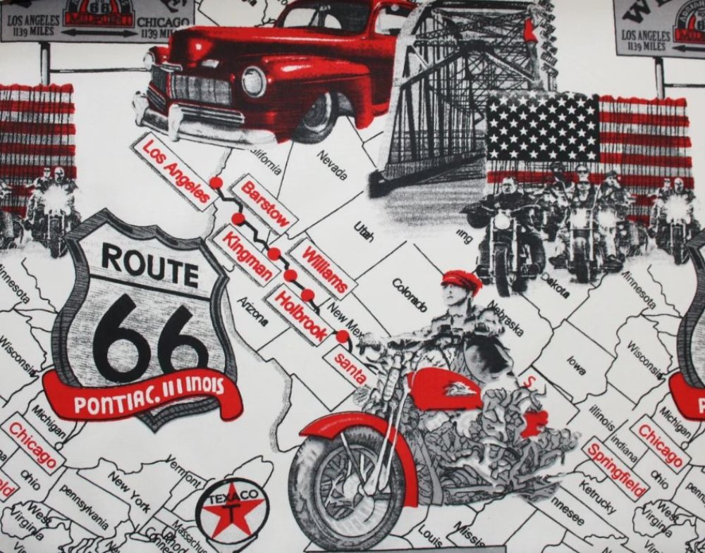Tissu 100% coton imprimé thème américain avec la célèbre route 66