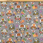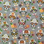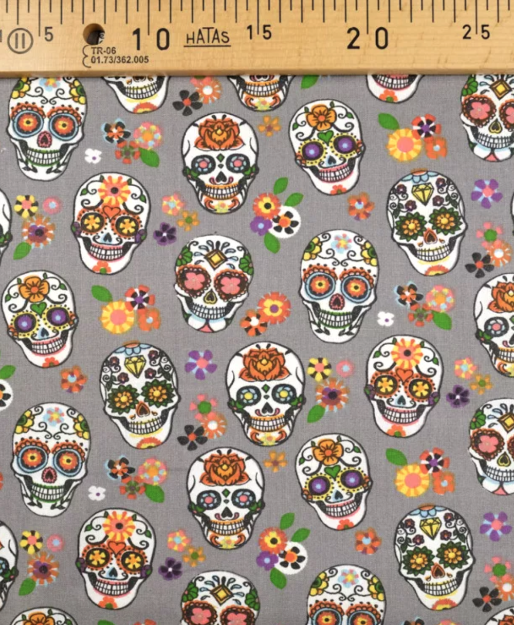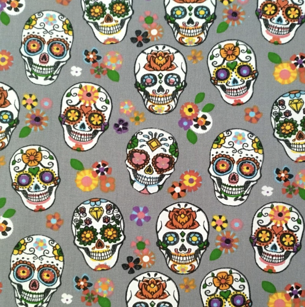 tissu avec tête de mort, squelette coloré, tête de mort, coupon tissu pas cher