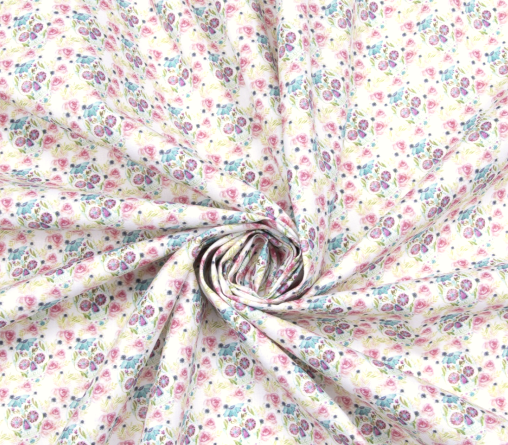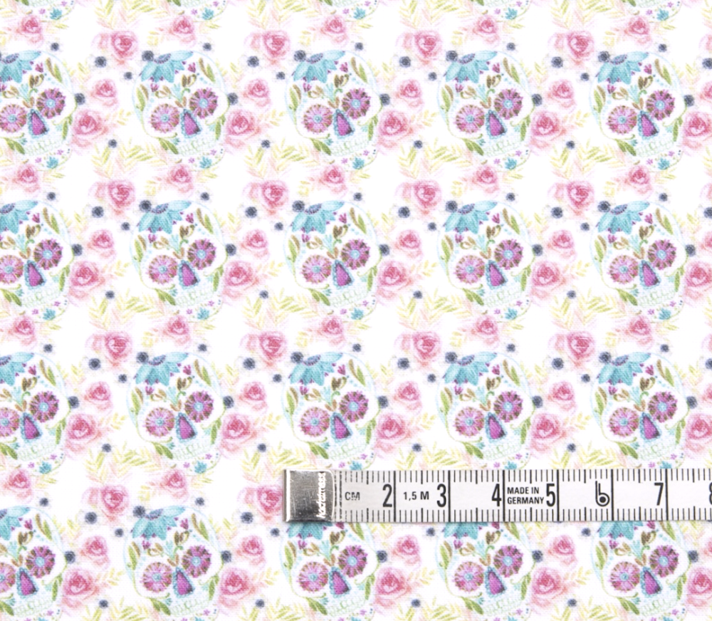 Tissu têtes de mort et fleurs multicolores 57x71cm