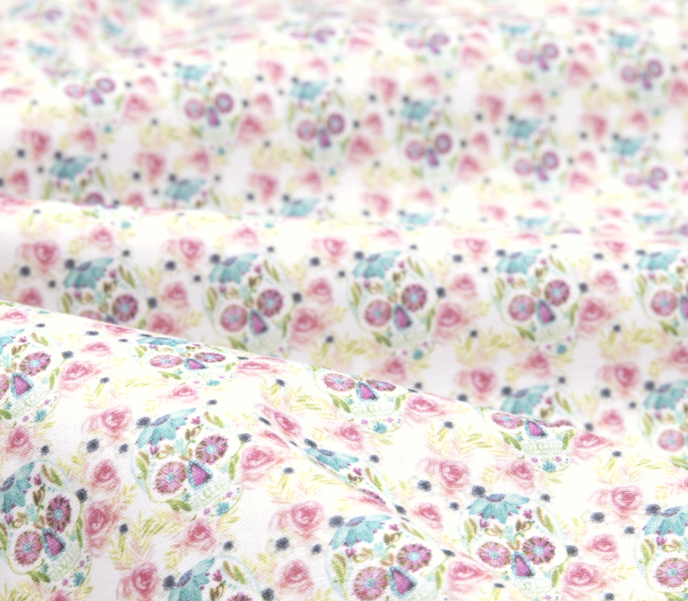 tissu avec tête de mort, squelette coloré, tête de mort, coupon tissu pas cher