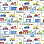 Tissu 100% coton avec des petites voitures dessus et des routes.