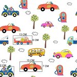 Tissu voitures et station service 50x80 cm