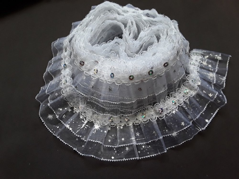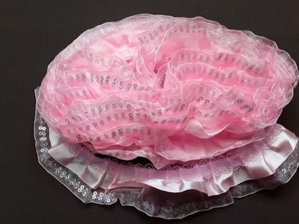 1.20m de dentelle froufrou rose argenté 4cm organza satin sequin à fleur. Plusieurs dentelles froufrou dans la boutique