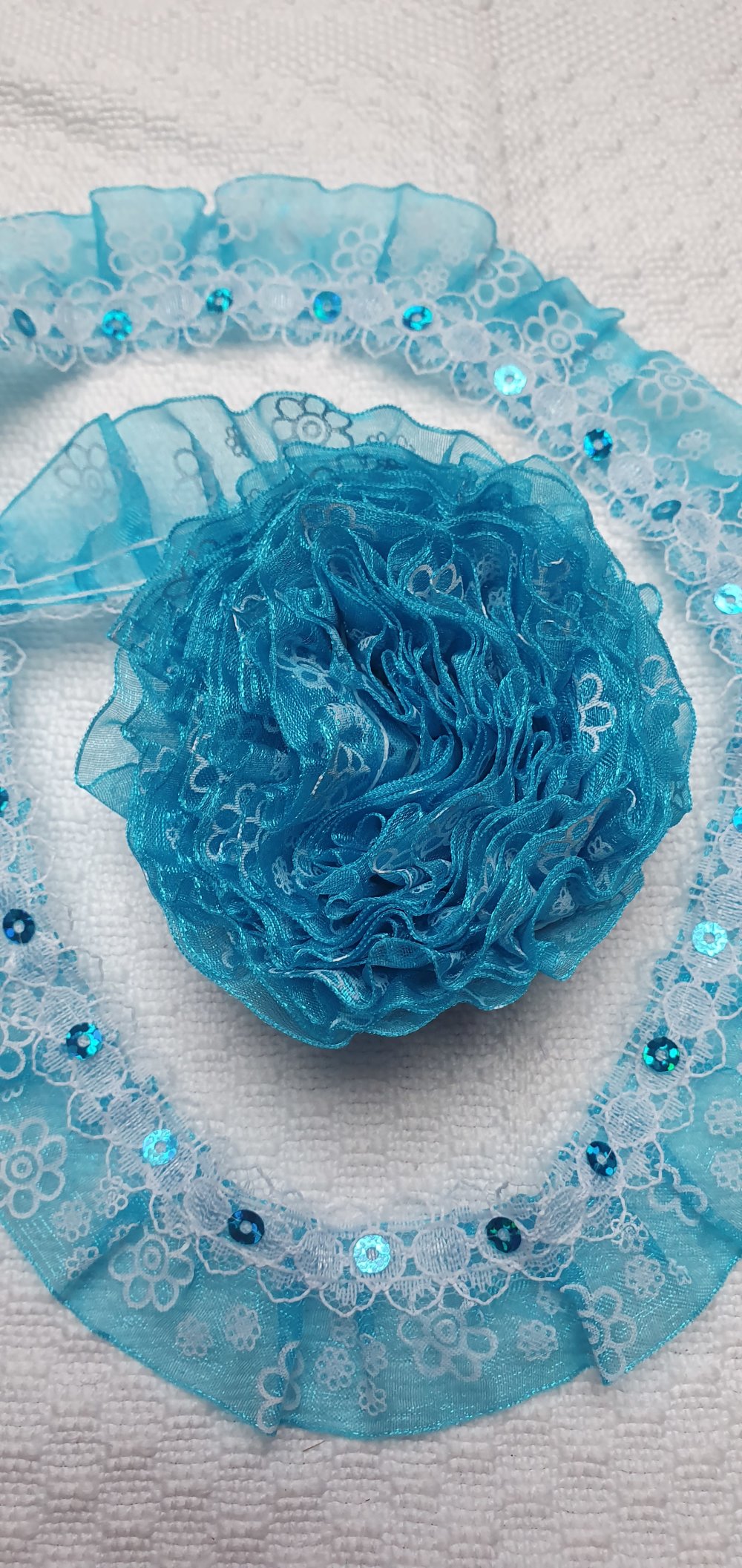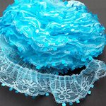 1.90m de dentelle froufrou bleue blanc 4.5cm polyester sequin. Plusieurs dentelles froufrou dans la boutique