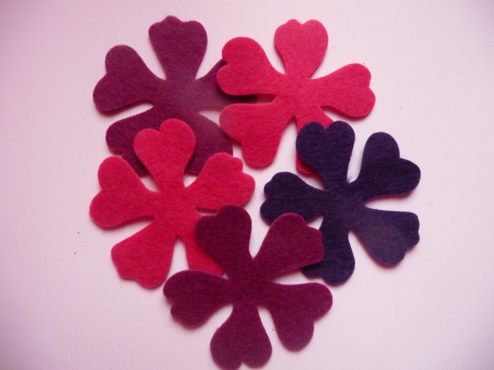 Je vous propose un ensemble de 5 fleurs en feutrine, dans les tons rose, violet, diamètre 6 cm.