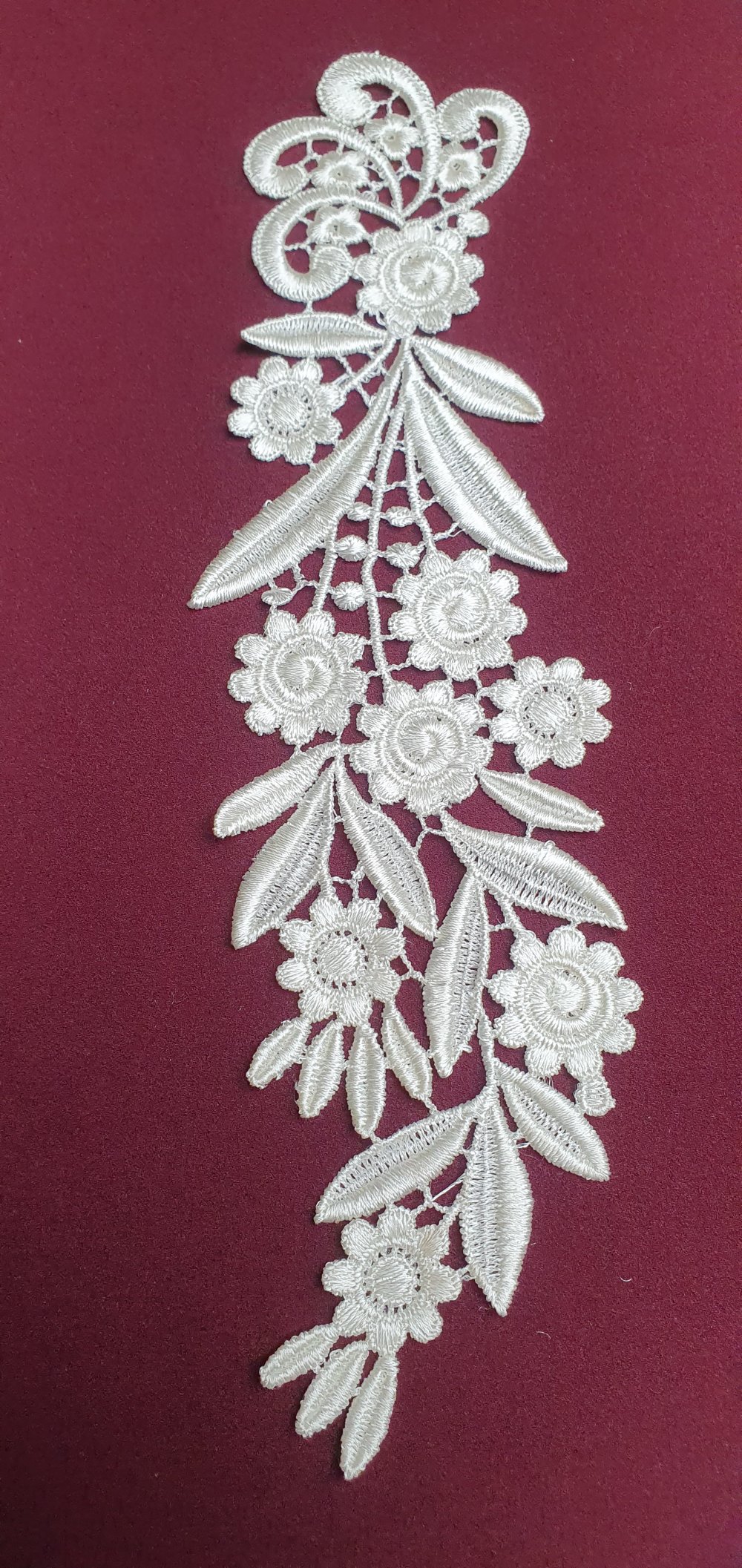 Applique fleur blanche guipure 29x8cm coton enduit dentelle AB026A