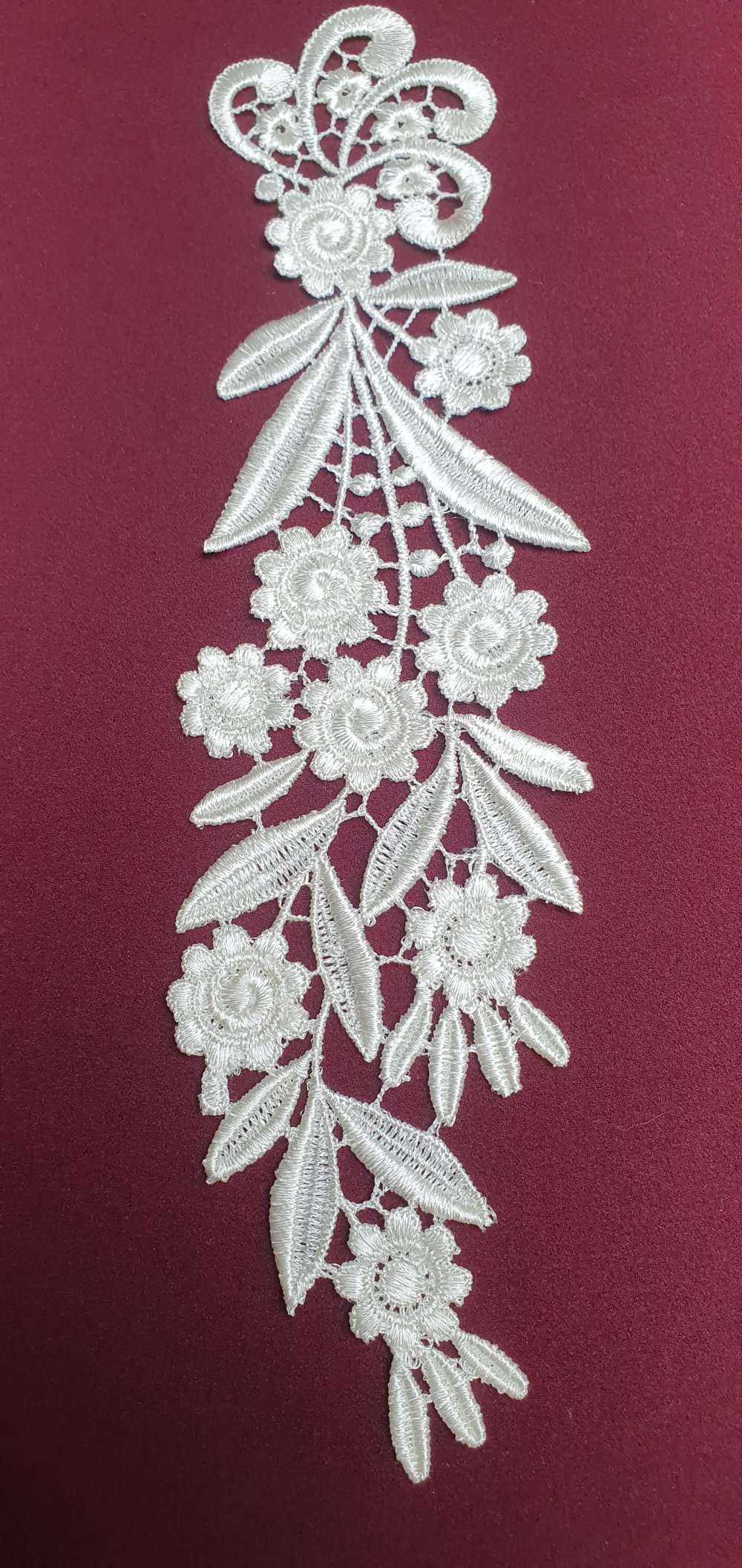 Applique fleur blanche guipure 29x8cm coton enduit dentelle AB026B