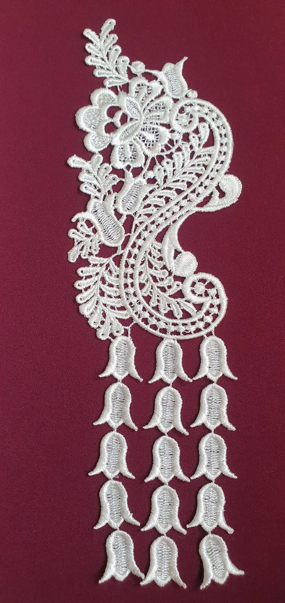Applique fleur clochette guipure 30.5x9.5cm ivoire coton enduit dentelle AB023A