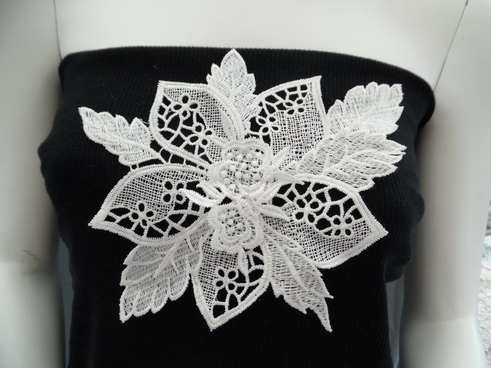 Applique fleur guipure 23.5x19cm ivoire dentelle coton enduit AB050