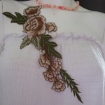 Applique fleur guipure 30x10cm beige dentelle en fil de soie