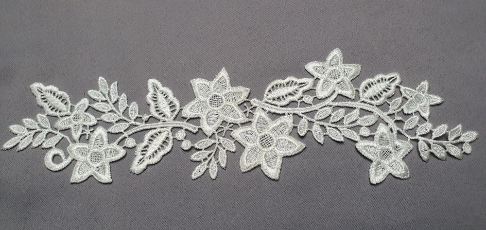 Applique fleur ivoire guipure 30x9cm coton enduit dentelle AB012B