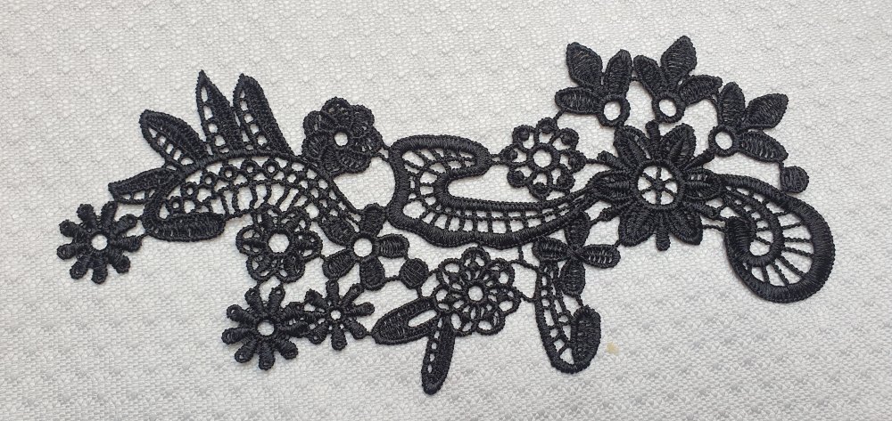 Applique fleur noire 21x8.5cm guipure coton enduit